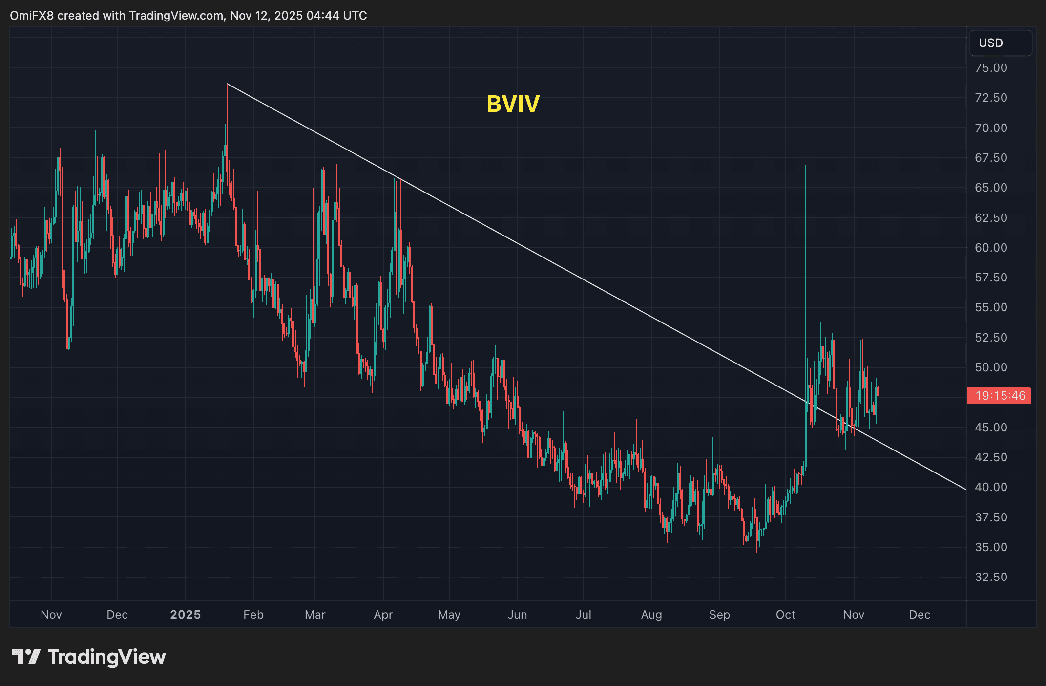 BVIV has topped its year-to-date downtrend. (TradingView) Thin liquidity amplifying moves