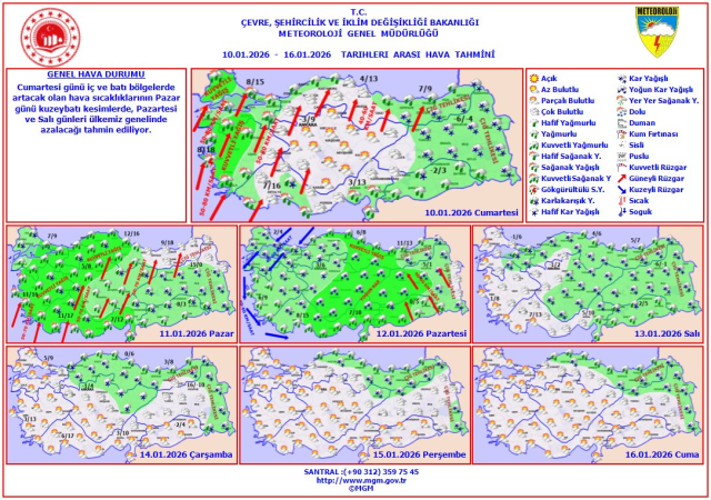 Meteoroloji Genel Müdürlüğü’nün 5 günlük hava tahmini raporuna göre: