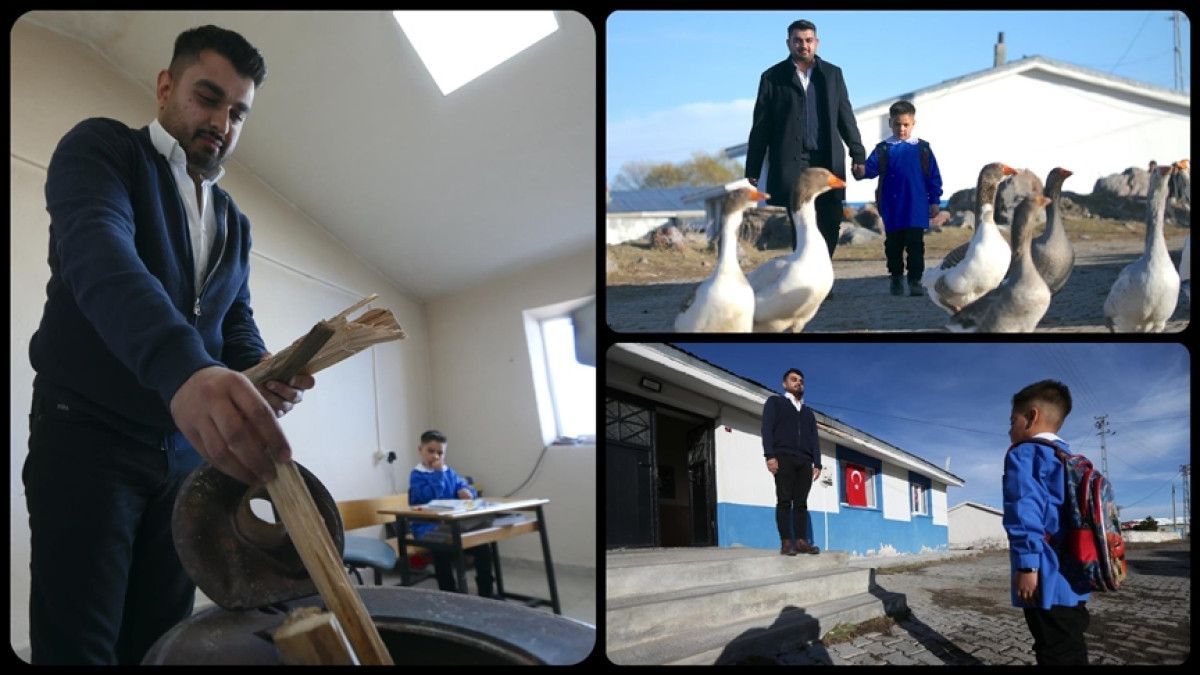 Kars’ın Arpaçay ilçesindeki Akmazdam İlkokulu’na atanan öğretmen Muhammet İsmail Doğan, tek öğrencisi Doruk Sunay ile köyde eğitim öğretime devam ediyor.