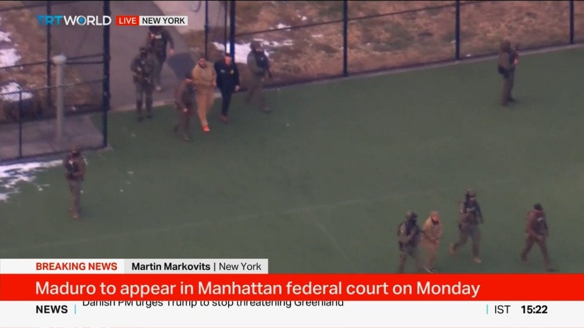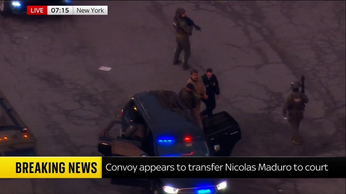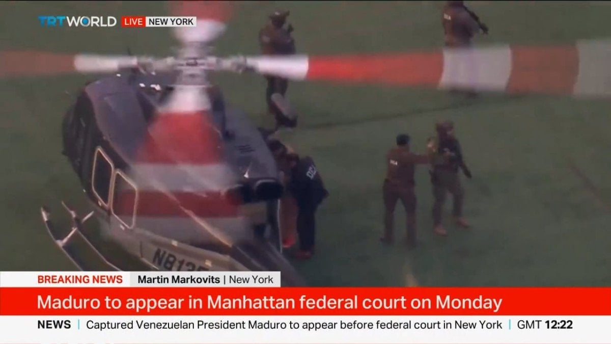 Eşiyle birlikte helikoptere bindirilen Maduro’nun, helikopterin Güney New York Eyalet Mahkemesi’ne doğru yol alarak ABD kolluk kuvvetlerine teslim edilmesi bekleniyor.