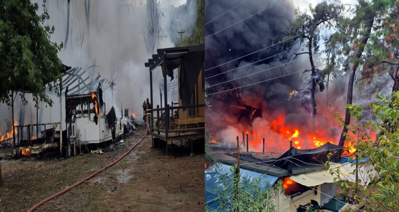 Fethiye’de bungalovlar alev alev yandı