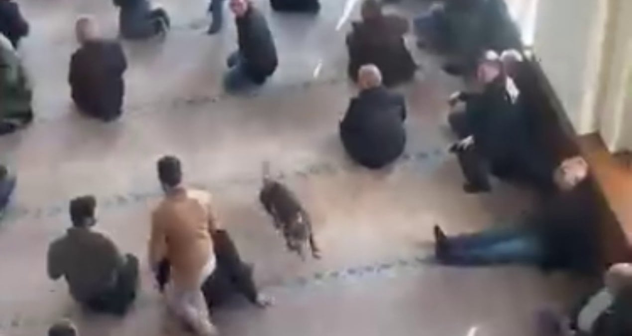 Kocaeli’de Cuma namazı öncesi vaaz verildiği esnada camiye giren pitbull cinsi köpek cep telefonu kamerasıyla görüntülendi.