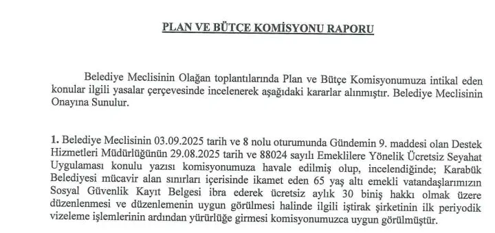 Karabük Belediye Meclisi’nde kabul edilen teklif ile halihazırda yürürlükte olan sınırsız ulaşım hakkının bir sonraki vizeleme döneminde sonlandırılması kararlaştırıldı. İlk kez 2024 yılında uygulanmaya başlanan uygulama resmen 31 Aralık 2025 tarihinde sona erecek.